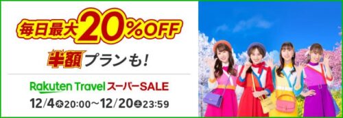 ・ホテル最大20%OFF、ツアー最大15,000円OFF(12月20日まで)
